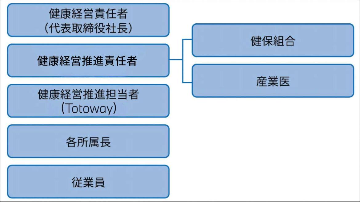 社内組織Totowayを各拠点の健康経営推進担当者として健康経営を推進しております。